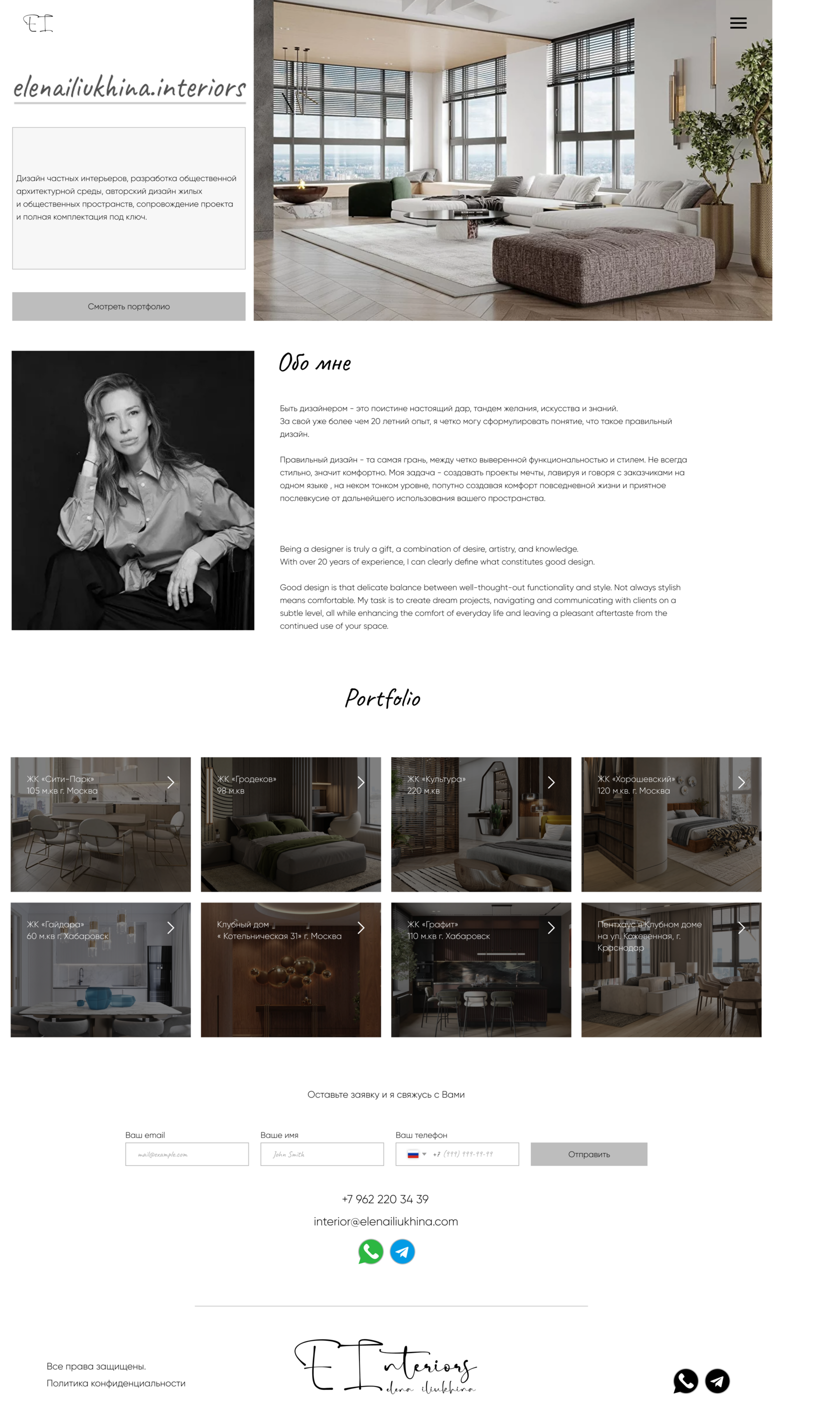 Сайт-портфолио для дизайнера интерьера