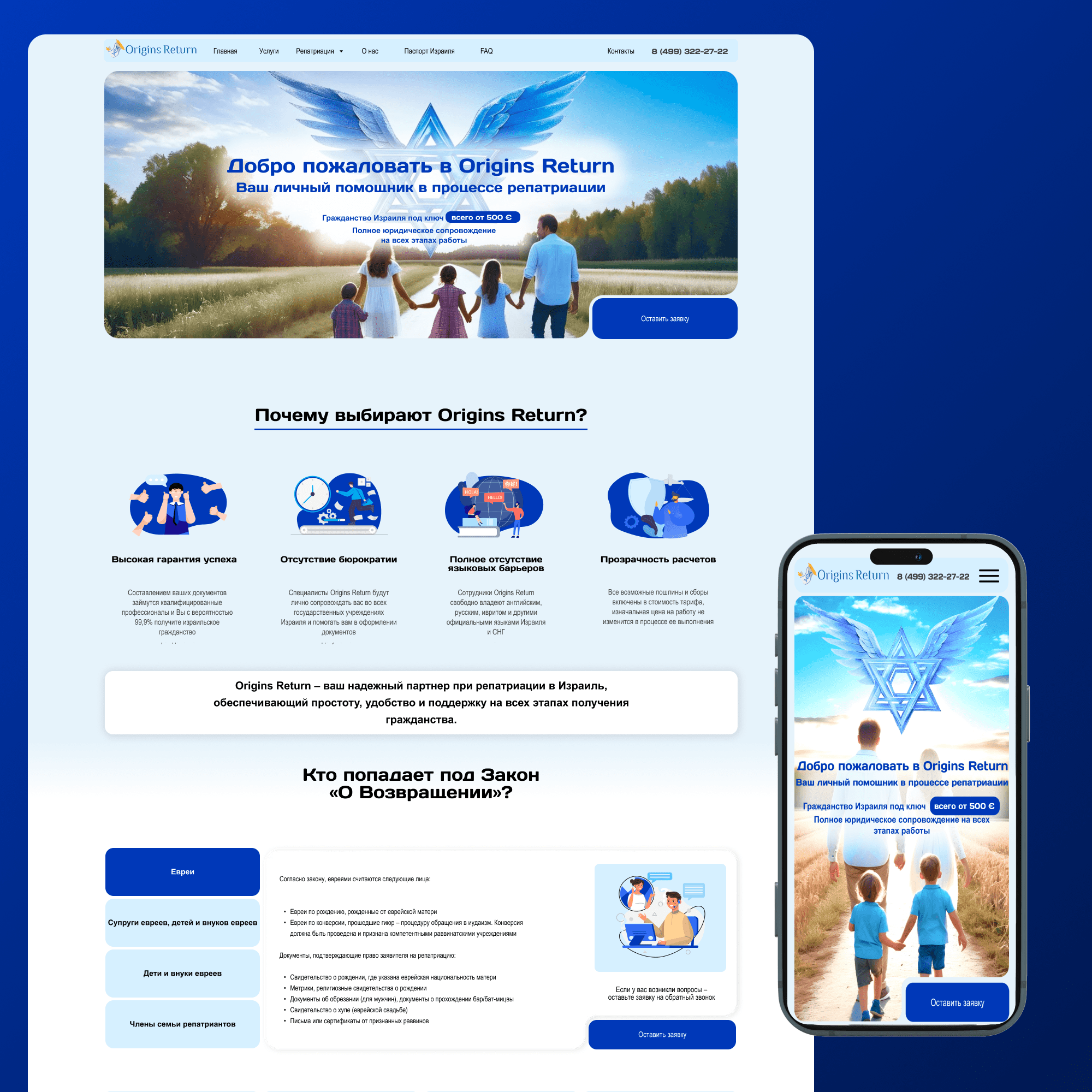 Cайт для компании юридического сопровождения Origins Return