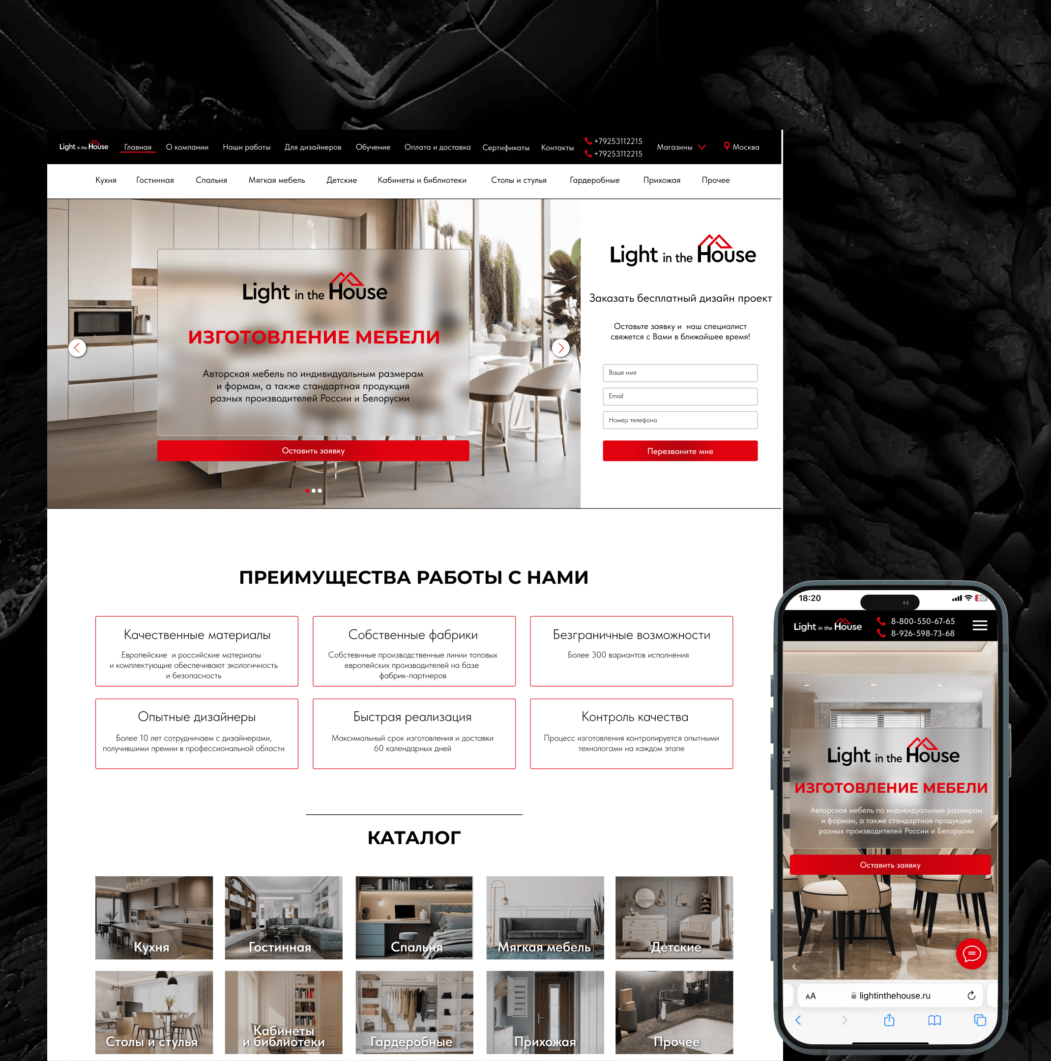 Cайт для компании по изготовлению мебели Light in the house